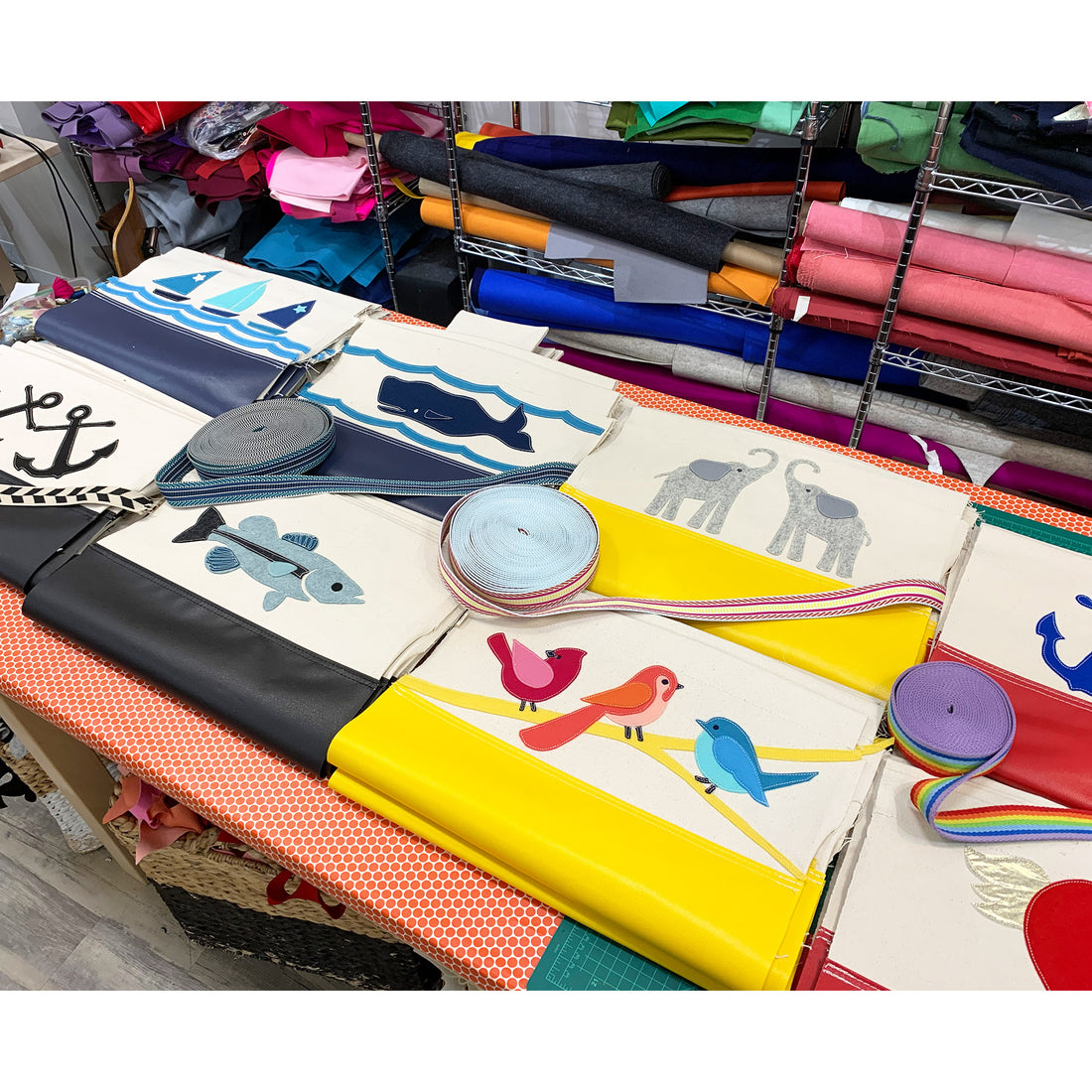 The Cheeky Monkey Home studio & retail shop is located in Belmont, MA. Her main focus was on pillows and accessories, but about three years ago, she found Steele Canvas tote bags and inquired about a collaboration. Our creative director, Frank, worked with Holly on forming a business partnership providing Holly and her team with high-quality locally made canvas and vinyl totes. Holly then uses her design prowess, applique, & sewing talents to bring beautiful bags to the Cheeky Monkey Home shelves.
