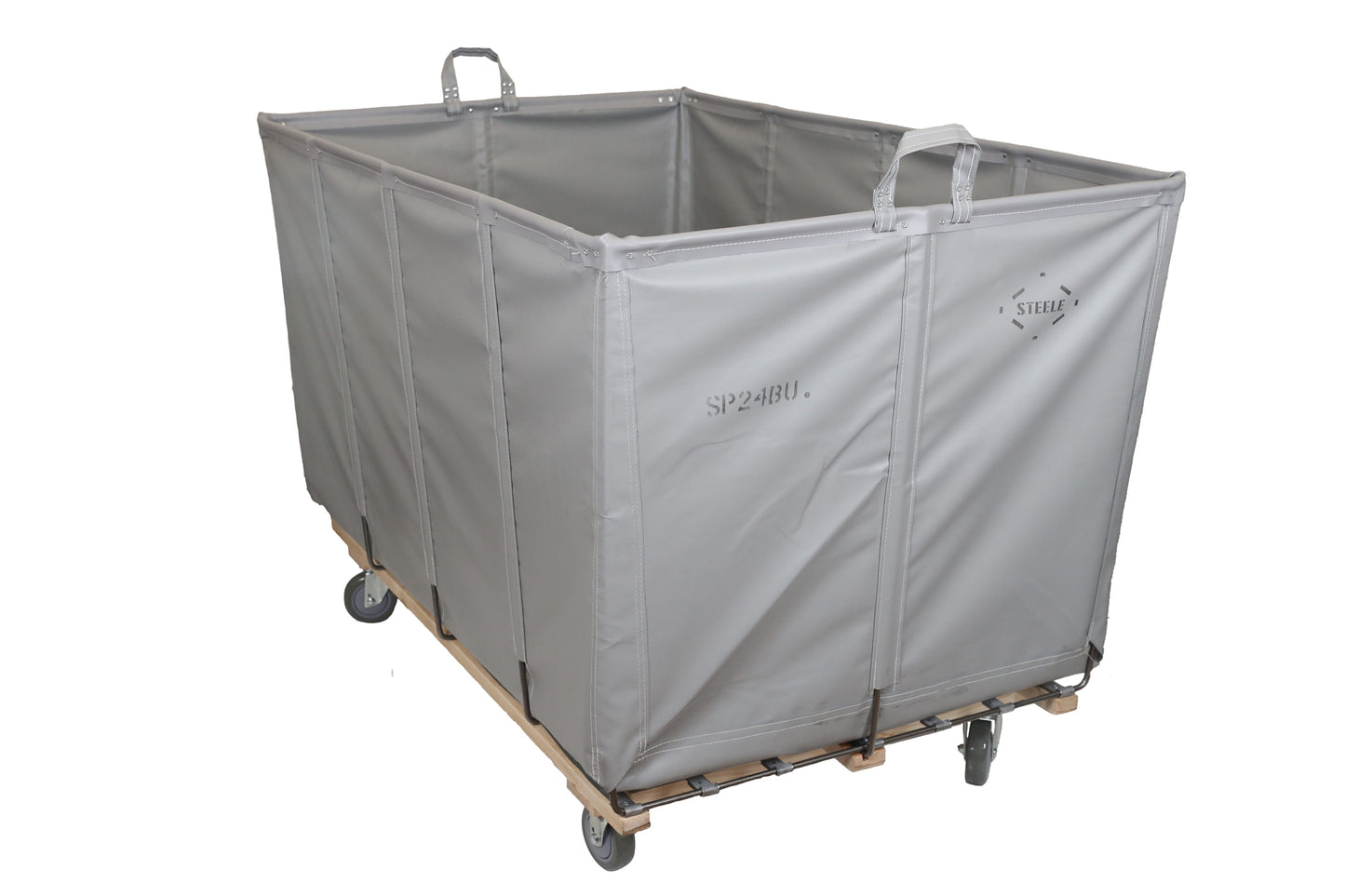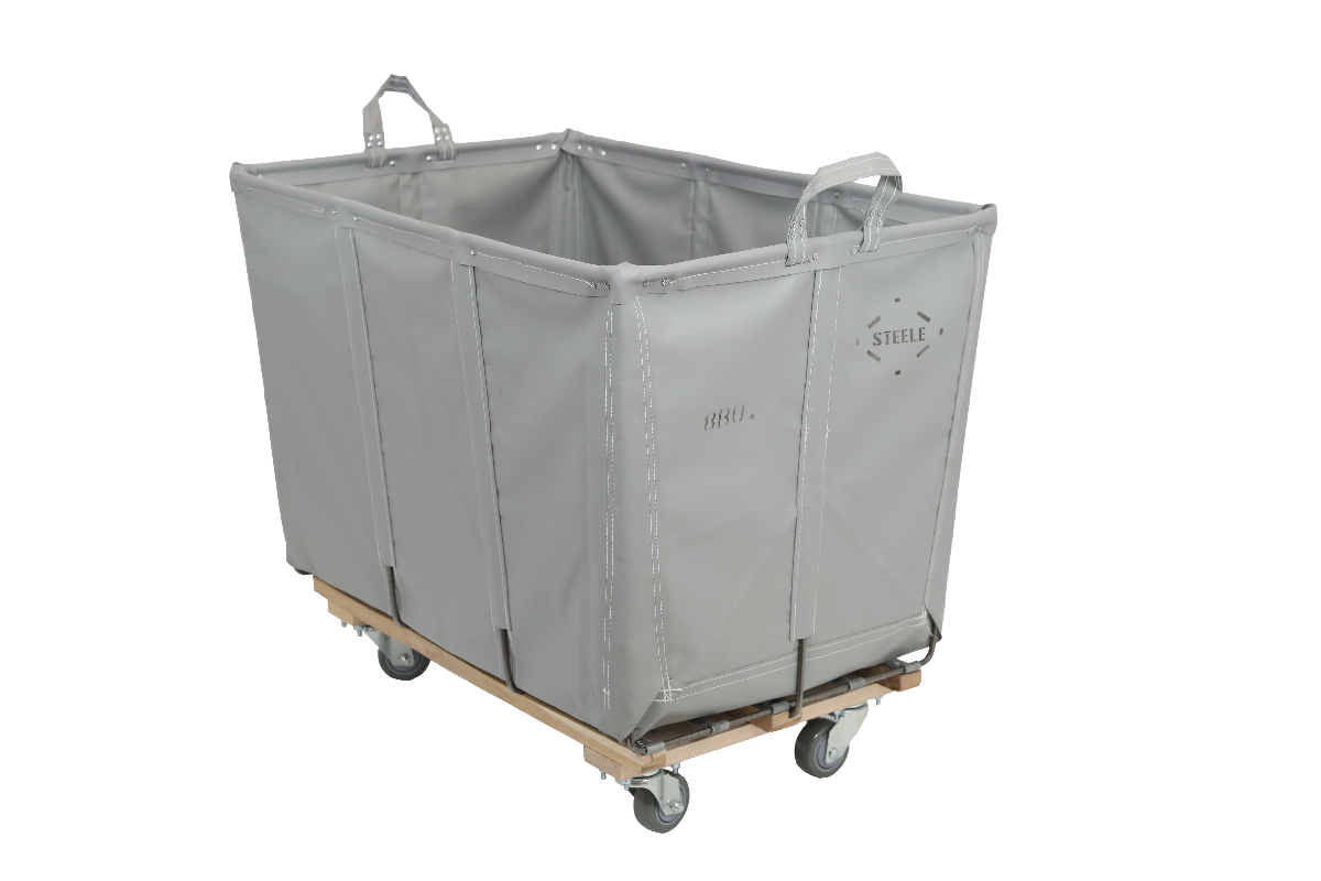 Product #92-S: By far our most popular and versatile product, the 92 Series is the ultimate utility truck. It's 18.5 oz. antimicrobial vinyl coated nylon body is water and tear resistant and treated with BACshield, which is proven 99% effective at preventing the growth and spread of mold, mildew, fungi and bacterias in places where moisture and heat, combined with bodily fluids, can make for a high risk infection. Handles at both ends are riveted around the steel rim to provide maximum strength, making them ideal for maintenance service, construction/demolition and retail warehouses. Each unit comes on four swivel non-marking polyurethane casters.