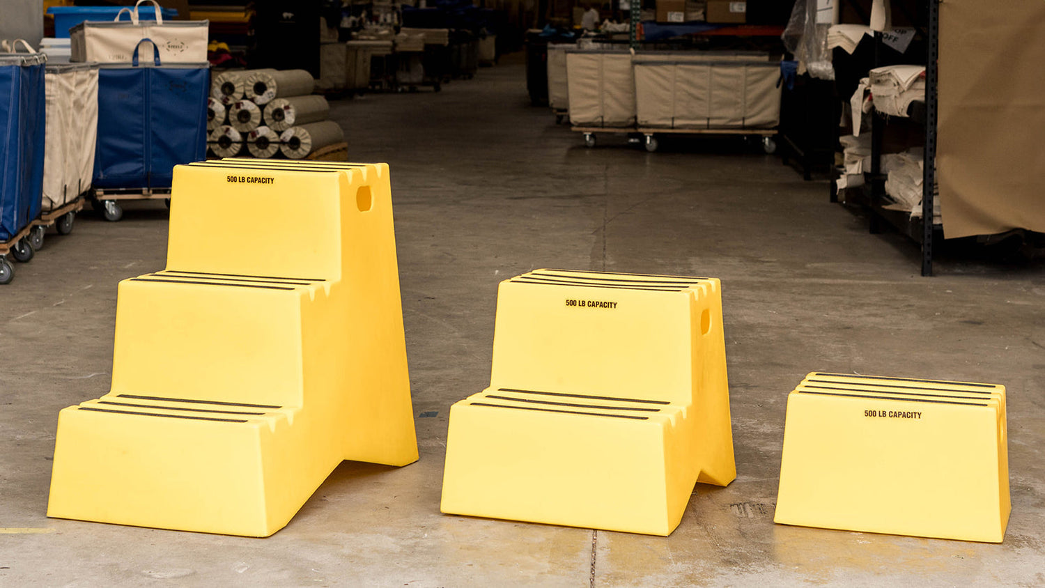 Elevate workplace safety with our durable polyethylene steps. These heavy-duty yellow platforms...