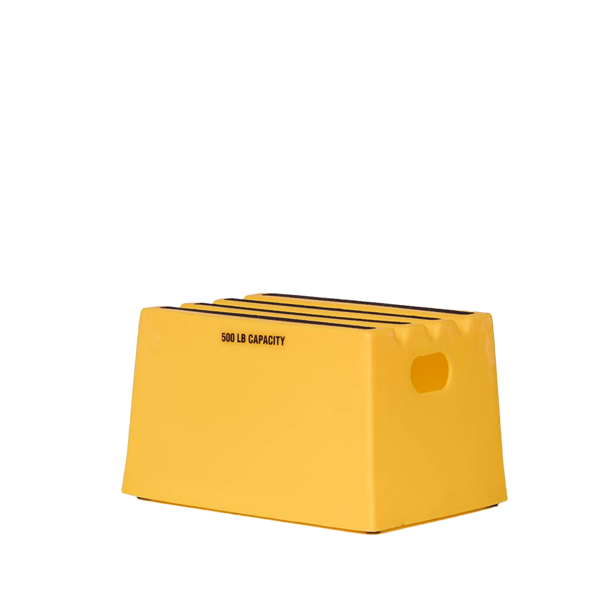 Our heavy duty polyethylene single step is molded to a thickness of .225", grading this step with a 500 lb. weight capacity. A hollow bottom allows this unit to be flipped over and used as a carry basket when not being used as a step. This step includes 4 grip strips to offer additional safety and slip prevention