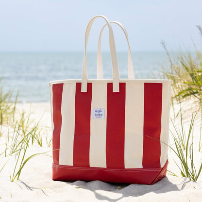 This roomy canvas tote features classic vertical stripes that channel Cape Cod charm with a fresh twist. A lightweight yet durable vinyl boxed bottom makes it ideal for stashing beach towels, local goodies, sunnies, and your favorite waterfront read.