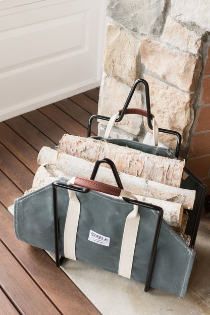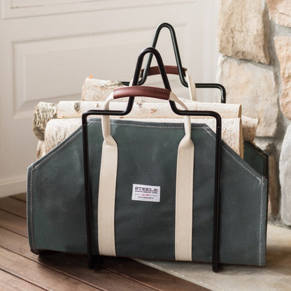 Steele Log Carrier: Our durable, handmade log carrier is the perfect accessory for your fire pit. Confidently move logs from point A to point B with easy-grip leather handles and a tough canvas body.