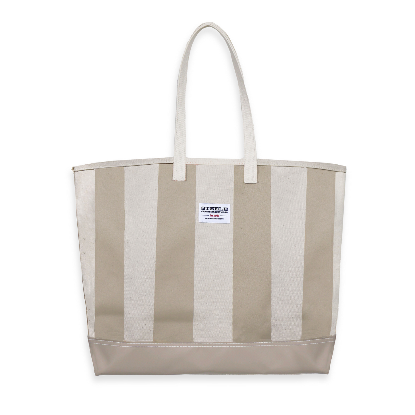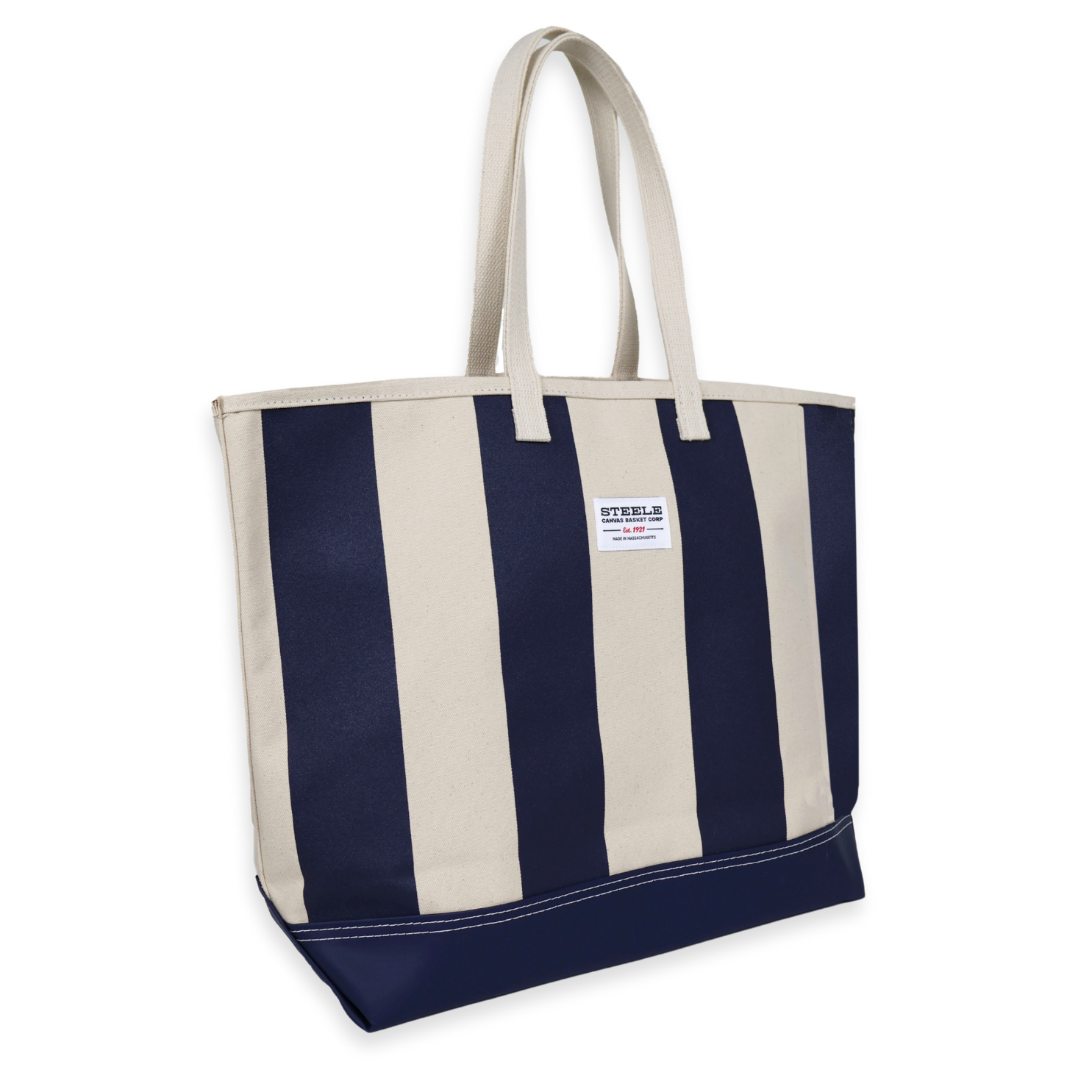 The roomy canvas tote features bold vertical stripes that bring instant vacation vibes. The lightweight yet sturdy vinyl boxed bottom makes this tote perfect for towels, snacks, sunnies, and your latest beach read.