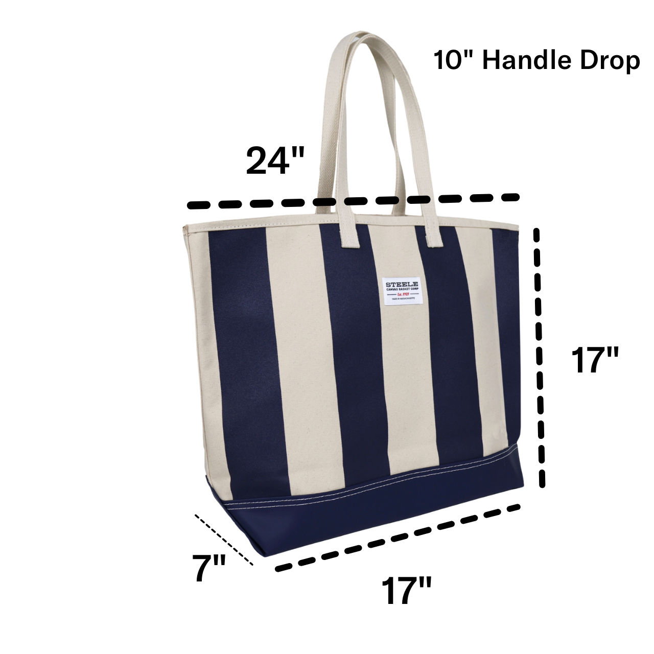 - Tote dimensions: 24" W at top x 17" at bottom x 7" depth x 17" H